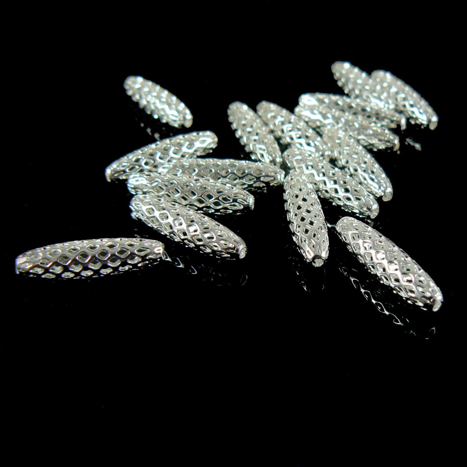 These quality made plated brass beads look great in so many designs; I love them! The last two photos shows examples of these beads in use. 4.5 x 3mm silver...