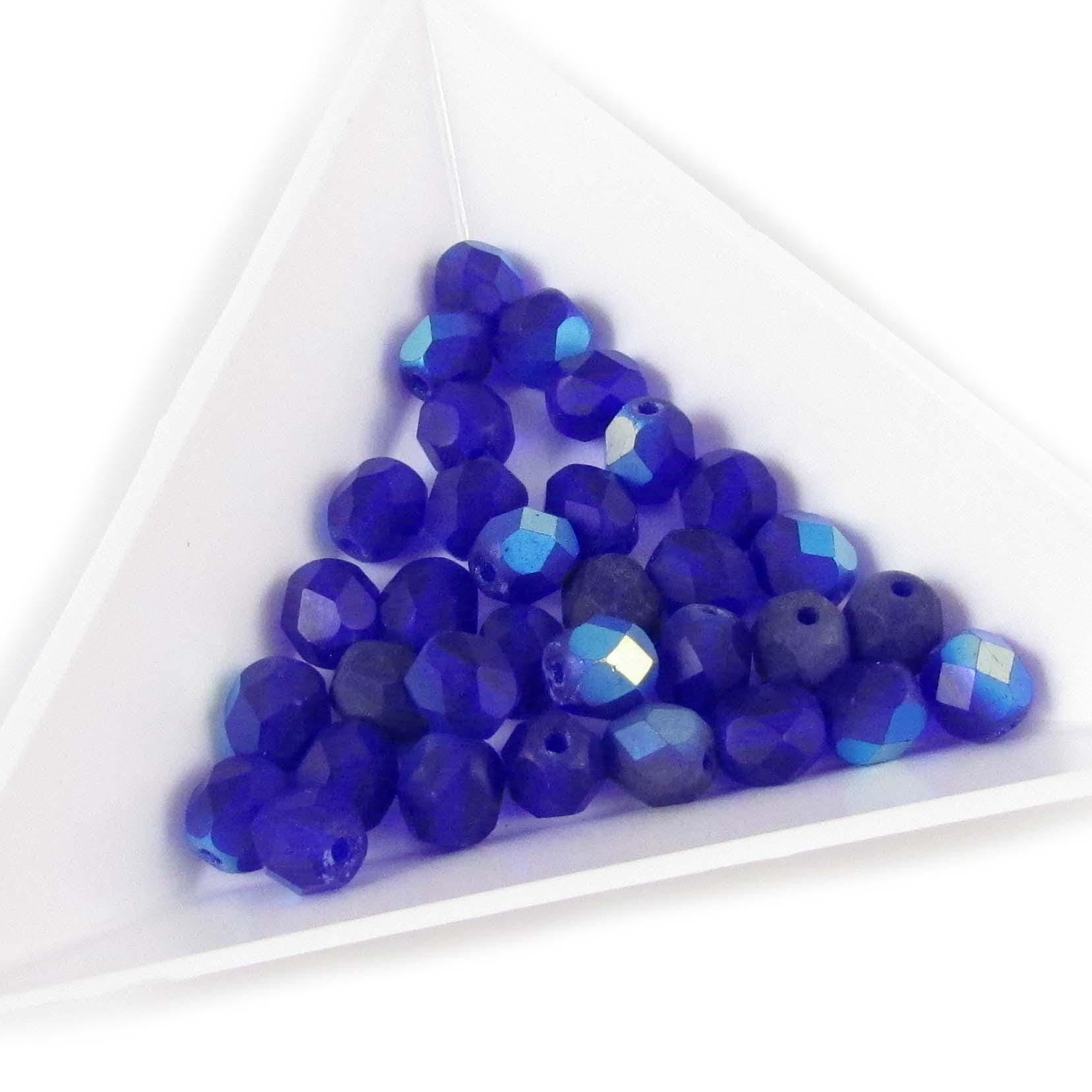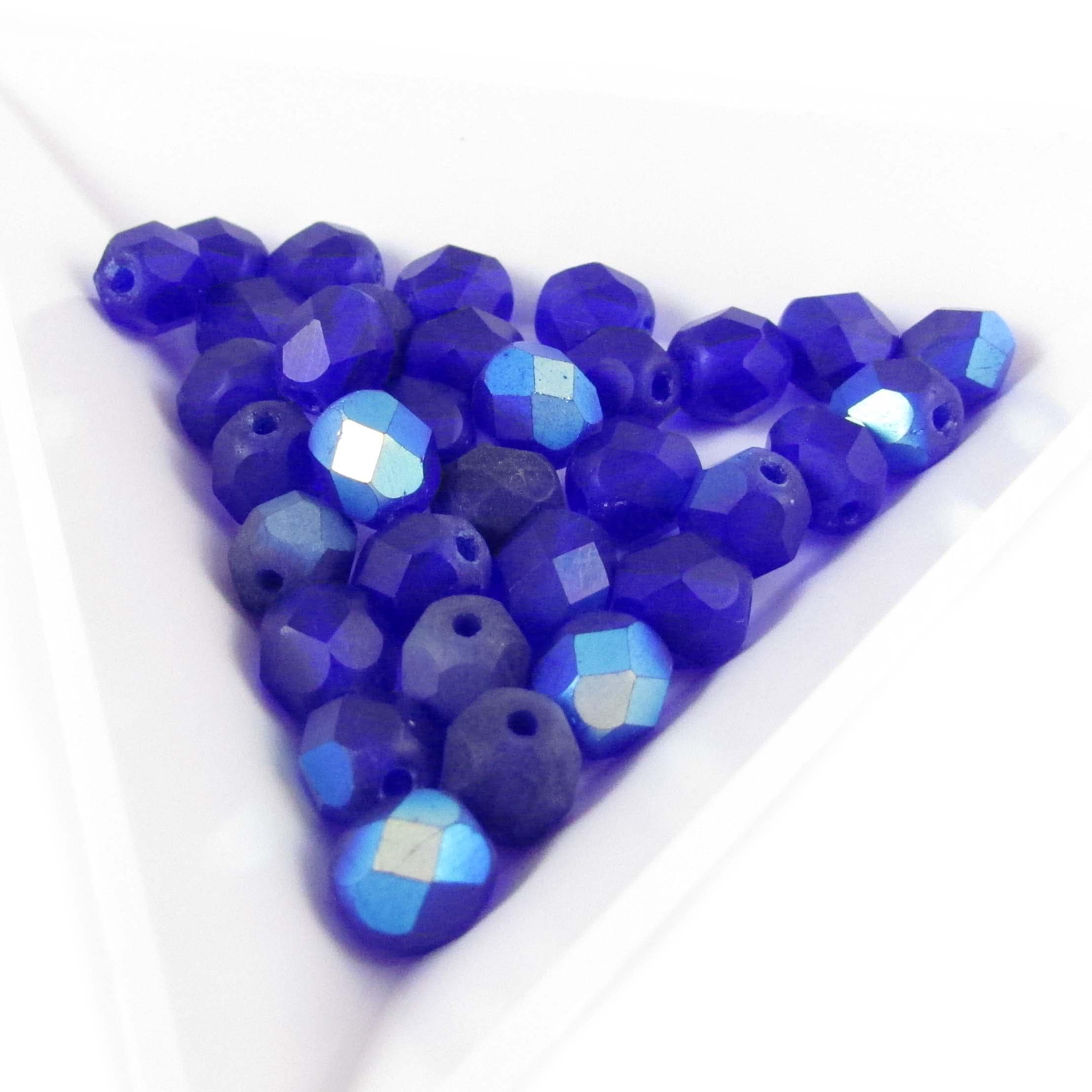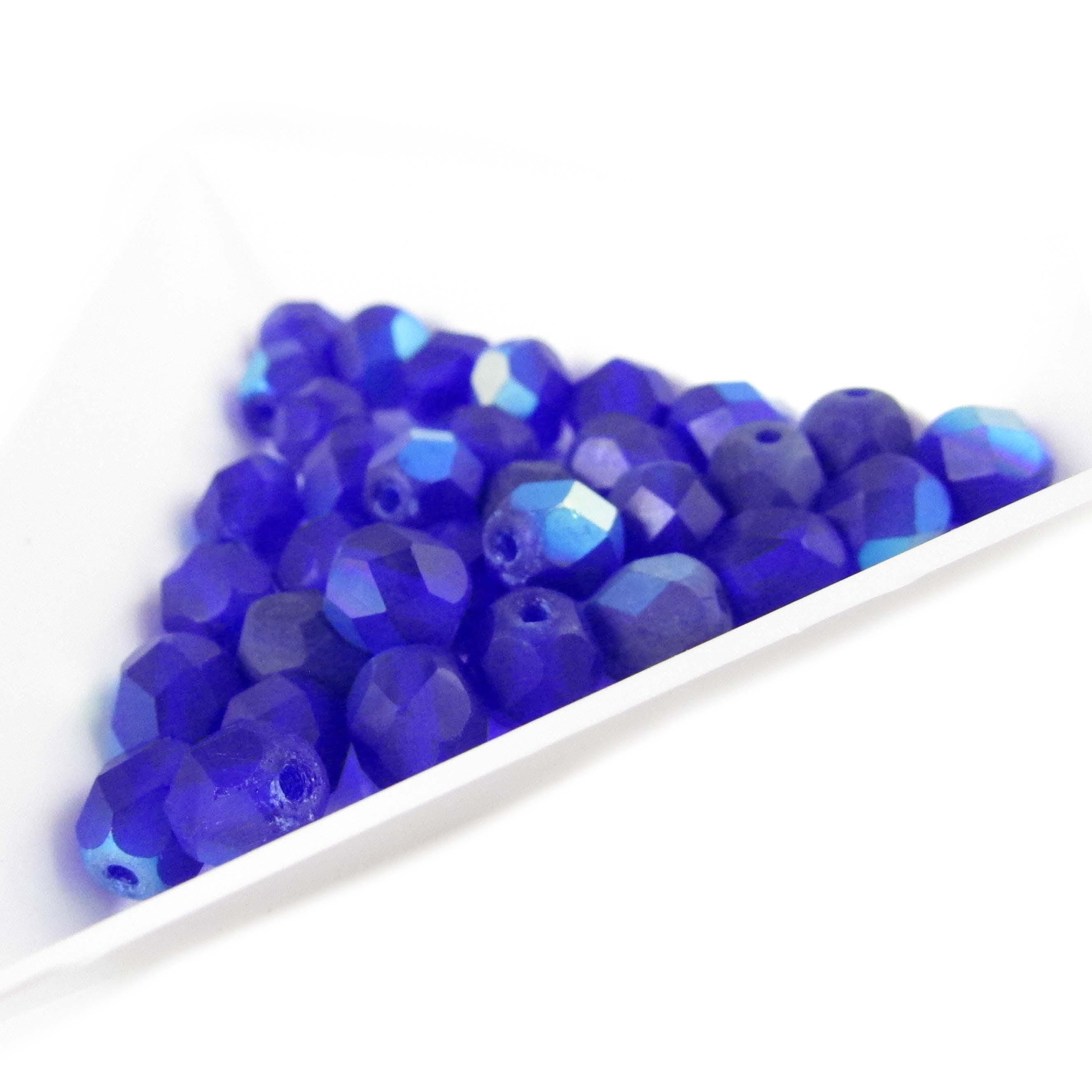 4mm Faceted Dark Blue Czech Glass Beads, AB Matte, 8" Strand