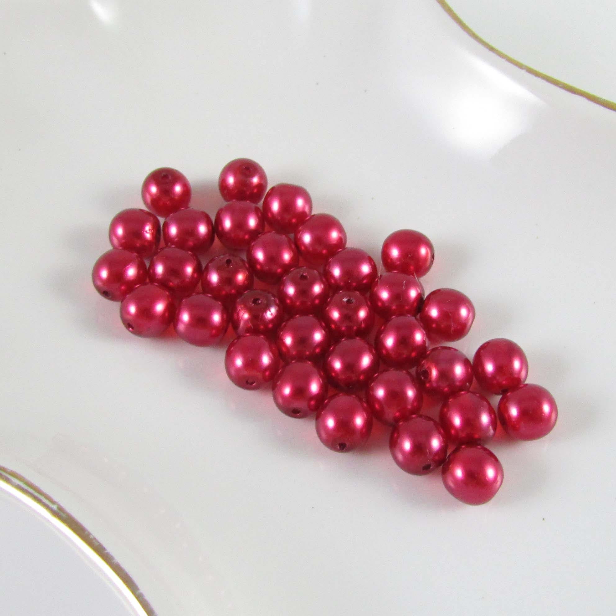 The pearl-like coating on these beads is delicate and should be treated accordingly. Size and shape may vary slightly and color may vary from dye lot to dye lot.